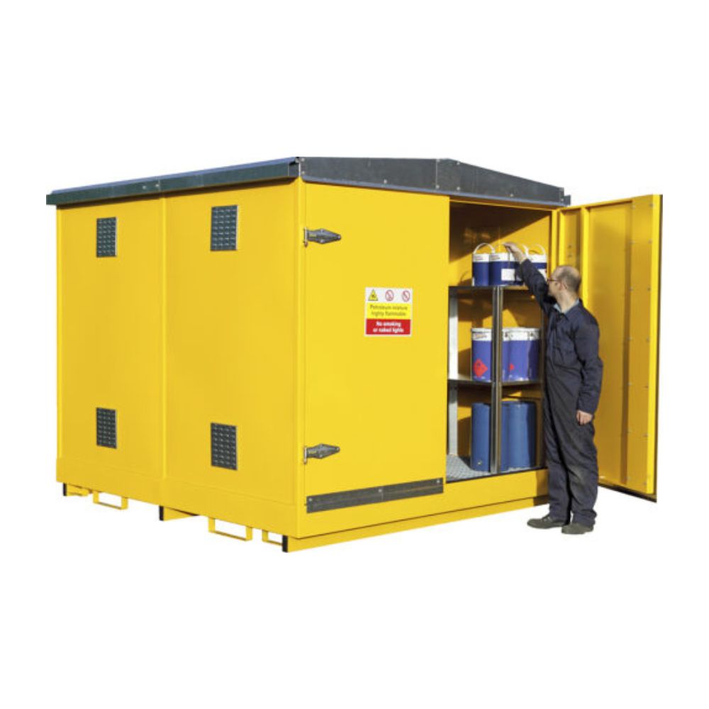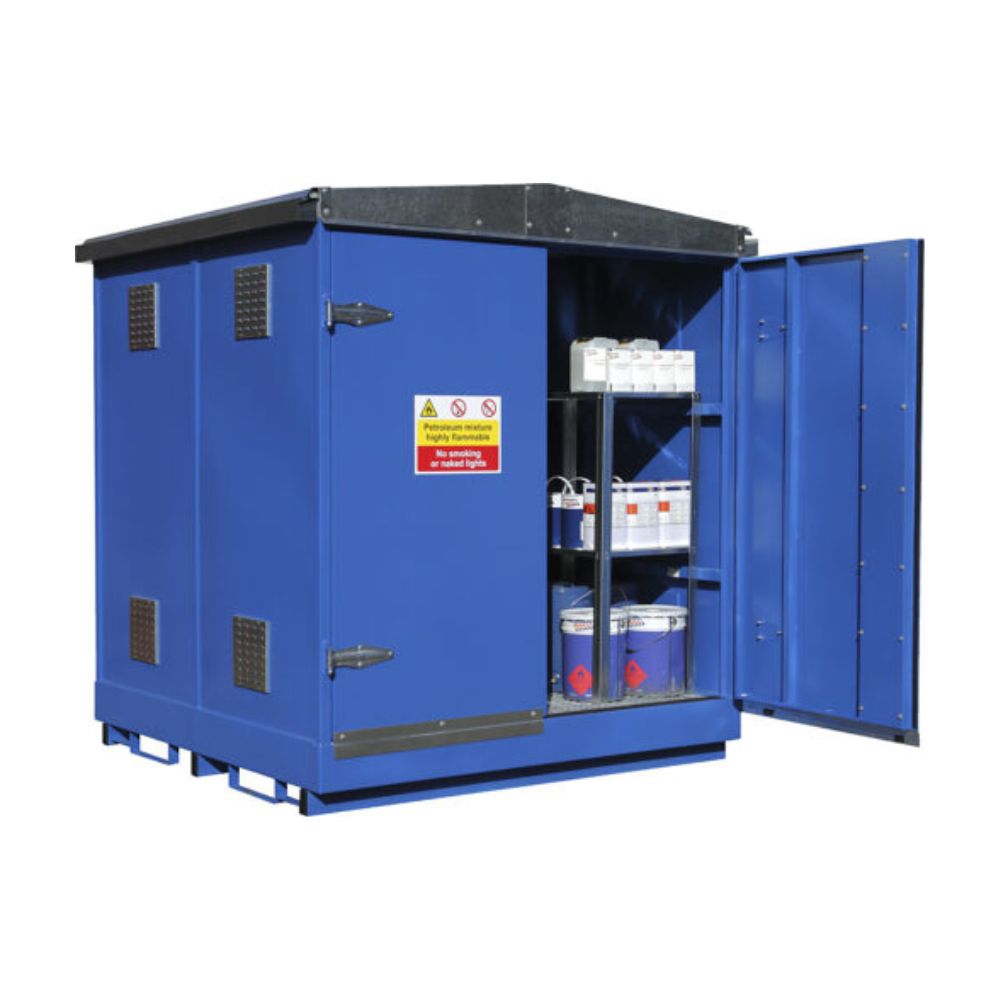 The stores are equipped with full-width, fully opening double doors that feature a two-point flush-fitting integral locking system for enhanced security. Please be advised that our GPSS range can be customised with paint to meet specific preferences. Additionally, it is important to note that the General Purpose Safety Store is not intended for the storage of temperature-sensitive liquids, including low flash point flammables or paint. For these types of materials, we recommend the Relocatable Safety Store, which is specifically designed to accommodate such liquids.